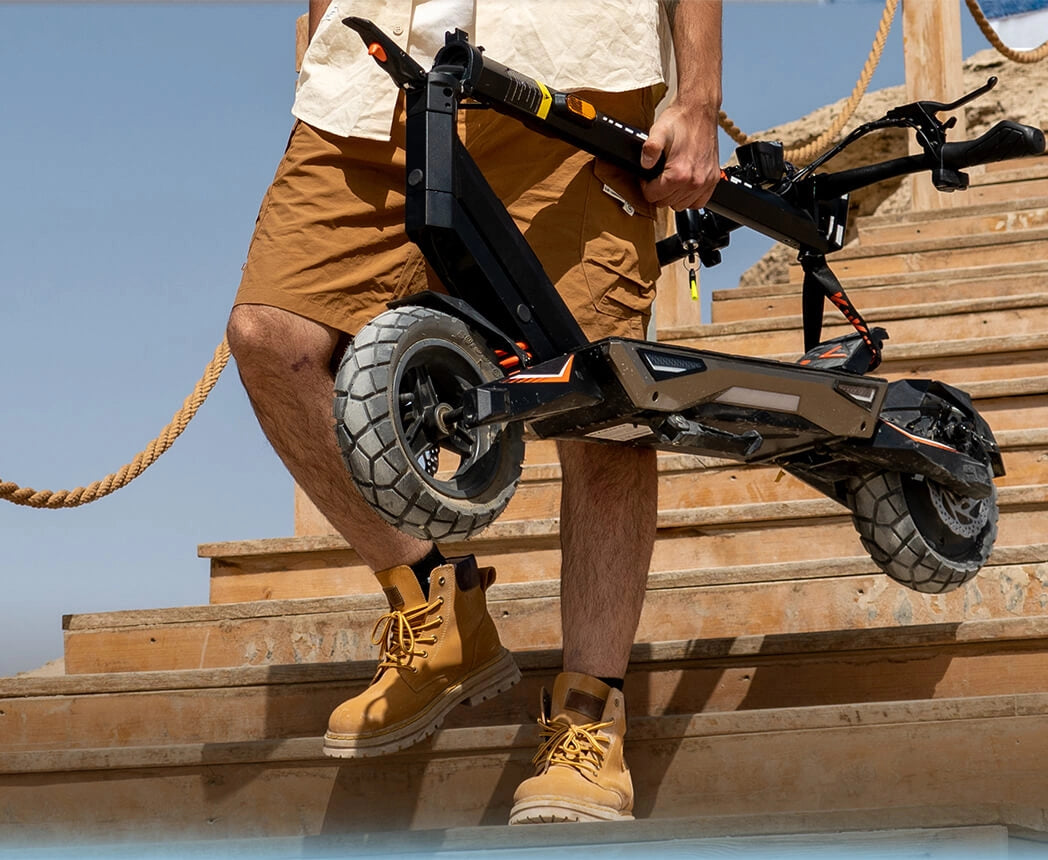El T3 presenta un diseño de plegado de un clic, lo que te permite plegar la scooter rápidamente y sin esfuerzo. Compacto y liviano cuando está plegado, es fácil de transportar, almacenar o meter en un coche, lo que lo hace perfecto para el transporte diario y viajes urbanos.