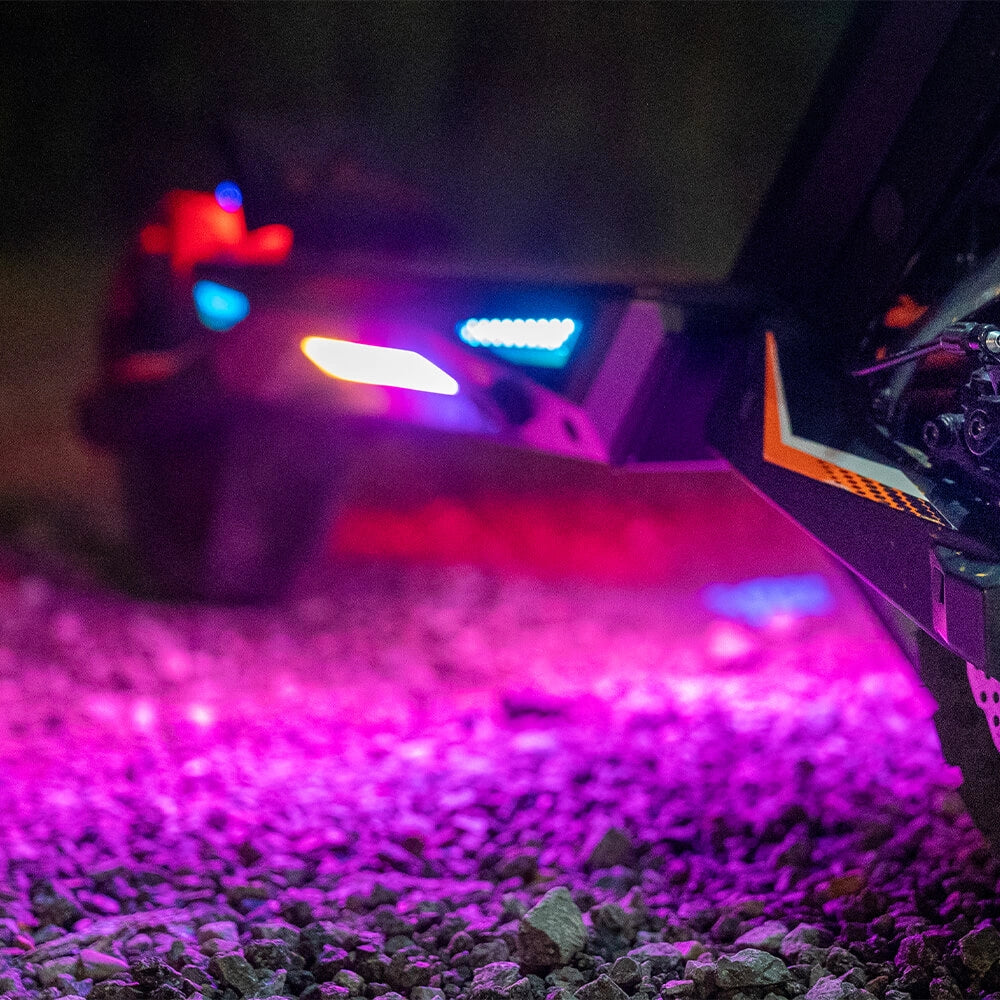 El T3 cuenta con luces ambientales en forma de alas coloridas en ambos lados, lo que mejora la visibilidad y le da a tu vehículo un aspecto elegante y dinámico. Ideal para recorridos nocturnos, crean un efecto visual llamativo mientras se aseguran de que te destaquen en la carretera.